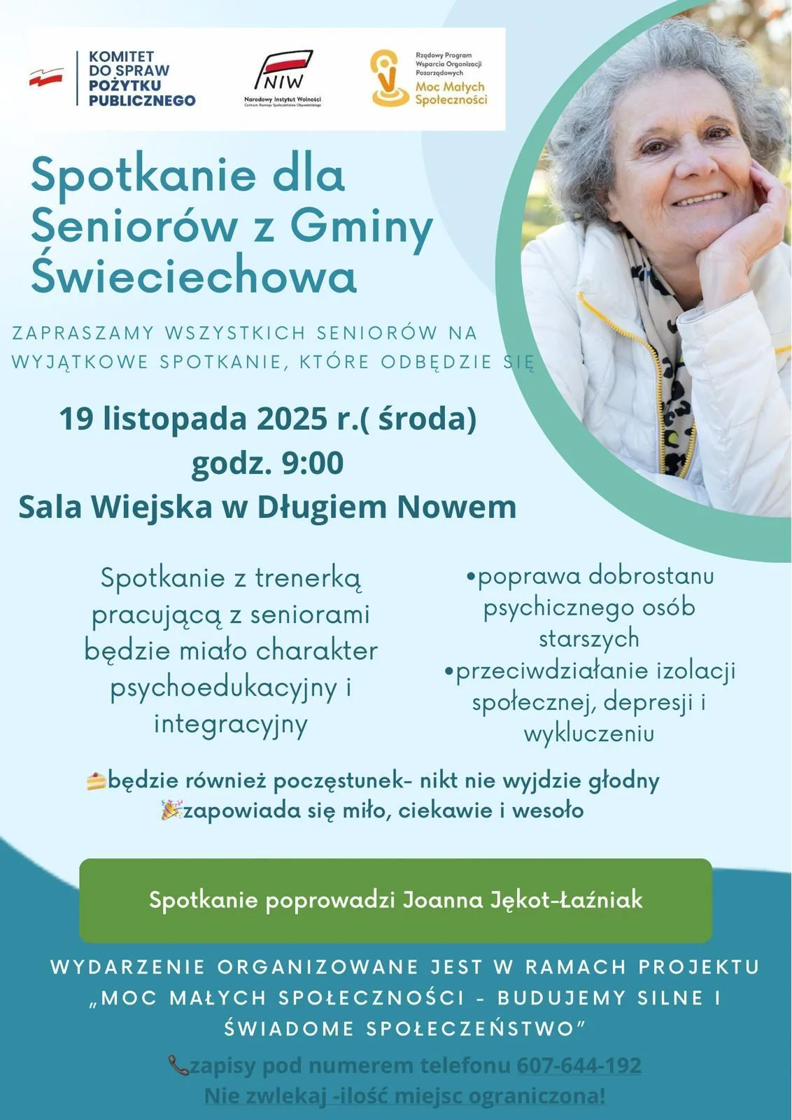 Serdecznie zapraszamy wszystkich Seniorów na wyjątkowe wydarzenie, które odbędzie się 19 listopada 2025 r. (środa) o godzinie 9:00 w Sali Wiejskiej w Długiem Nowem.