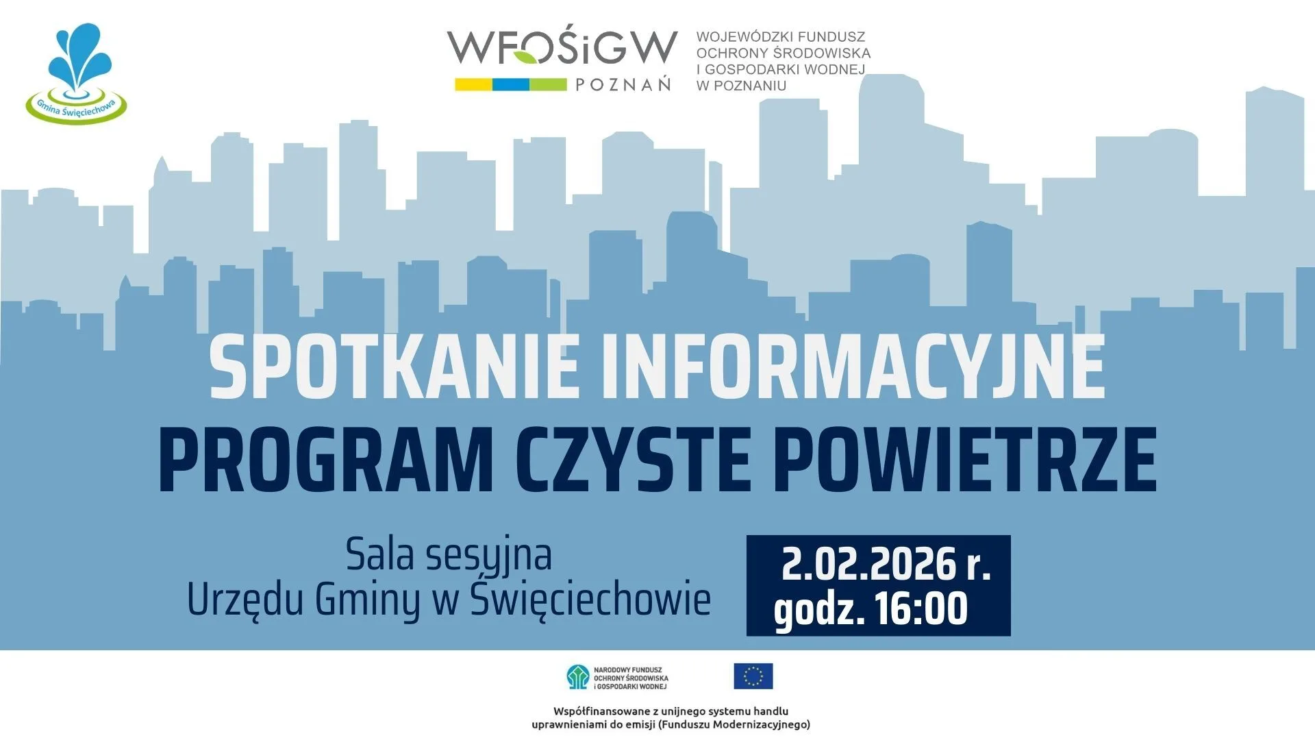 Urząd Gminy w Święciechowie serdecznie zaprasza mieszkańców na drugie spotkanie informacyjne poświęcone rządowemu programowi „Czyste Powietrze”.