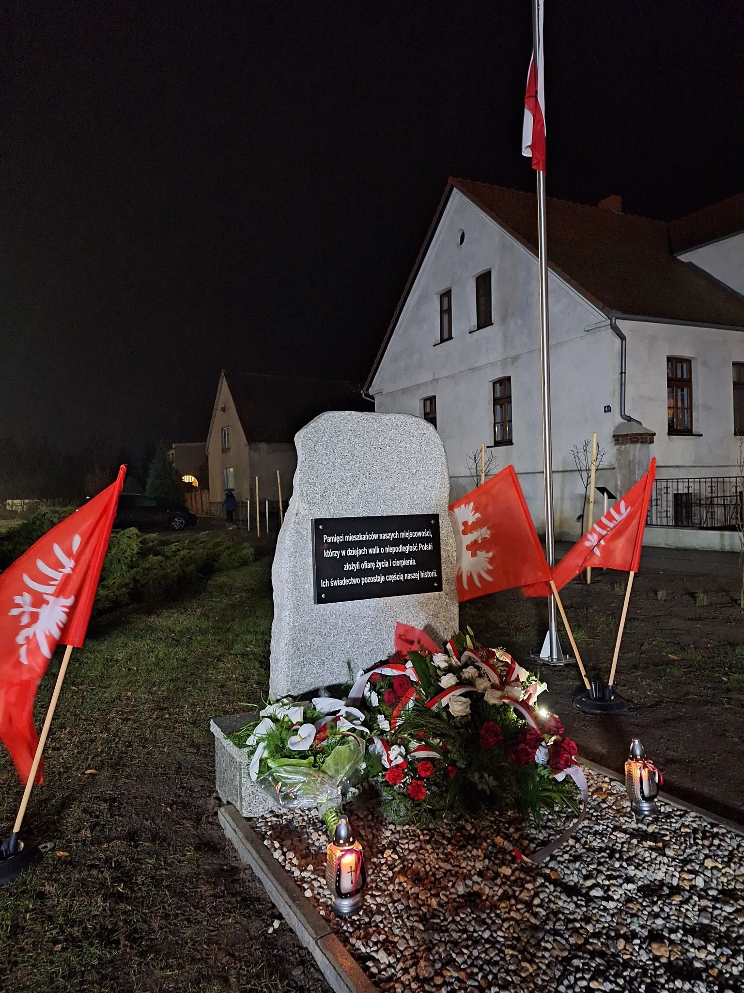„Pamięci mieszkańców naszych miejscowości, którzy w dziejach walk o niepodległość Polski złożyli ofiarę życia i cierpienia. Ich świadectwo pozostaje częścią naszej historii.”