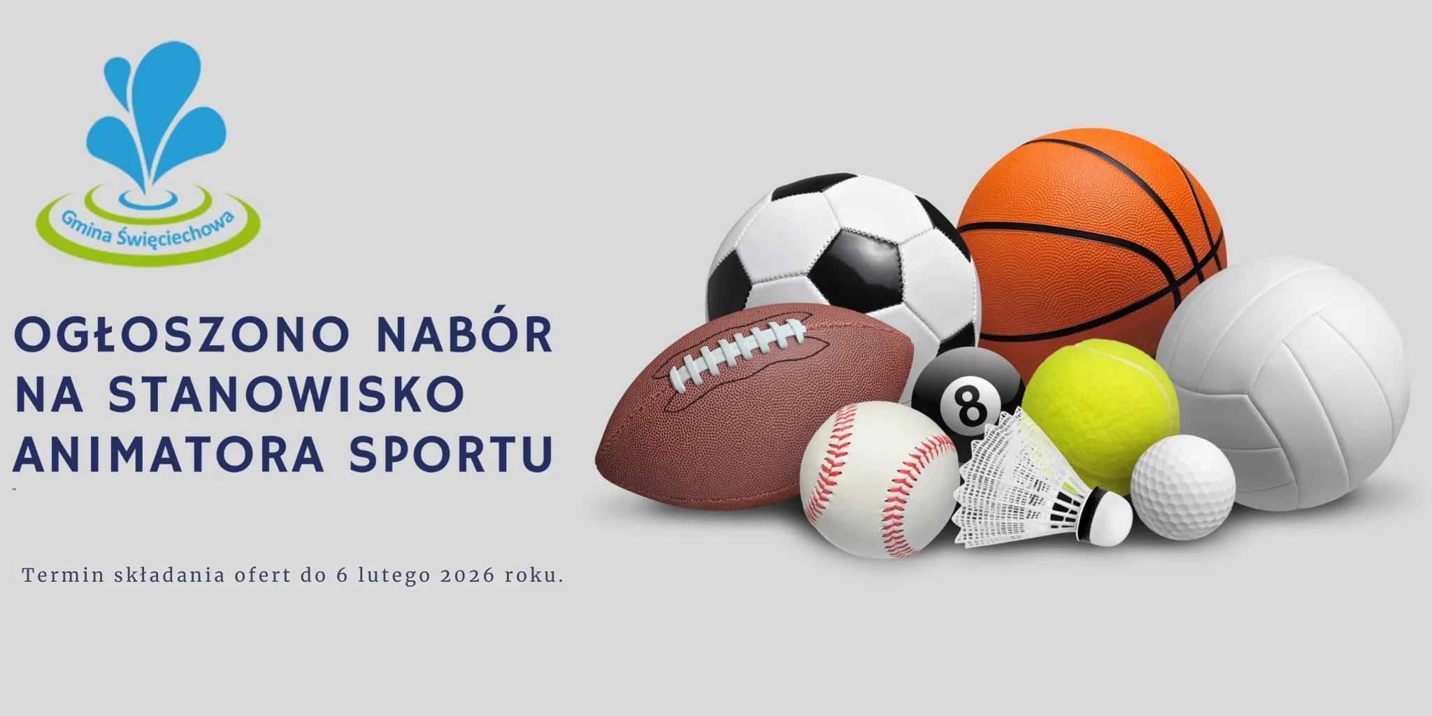 Wójt Gminy Święciechowa ogłasza nabór na stanowisko Animatora sportu.
