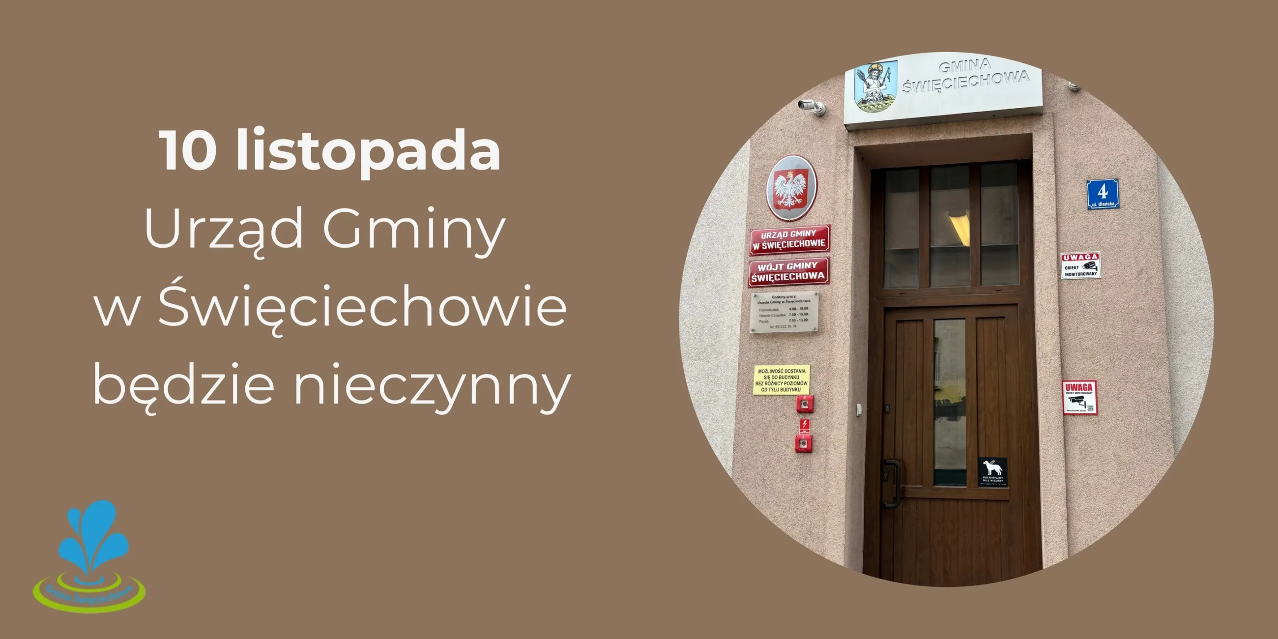 W poniedziałek, 10 listopada 2025 r. Urząd Gminy w Święciechowie będzie nieczynny.
